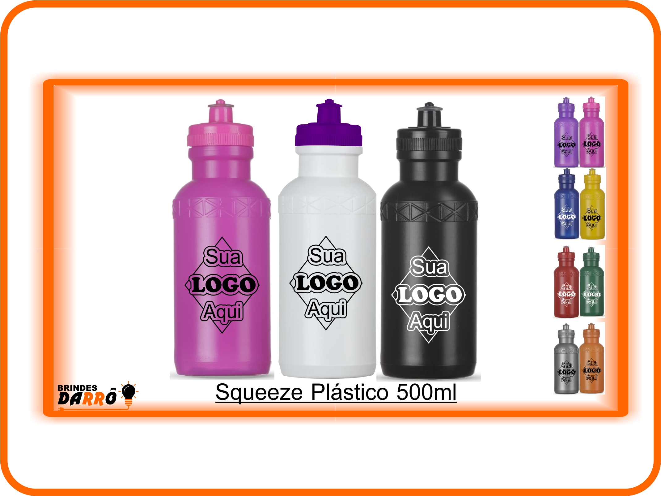 Descrição: Squeeze 500ml de plástico resistente, possui detalhe em relevo na parte superior e